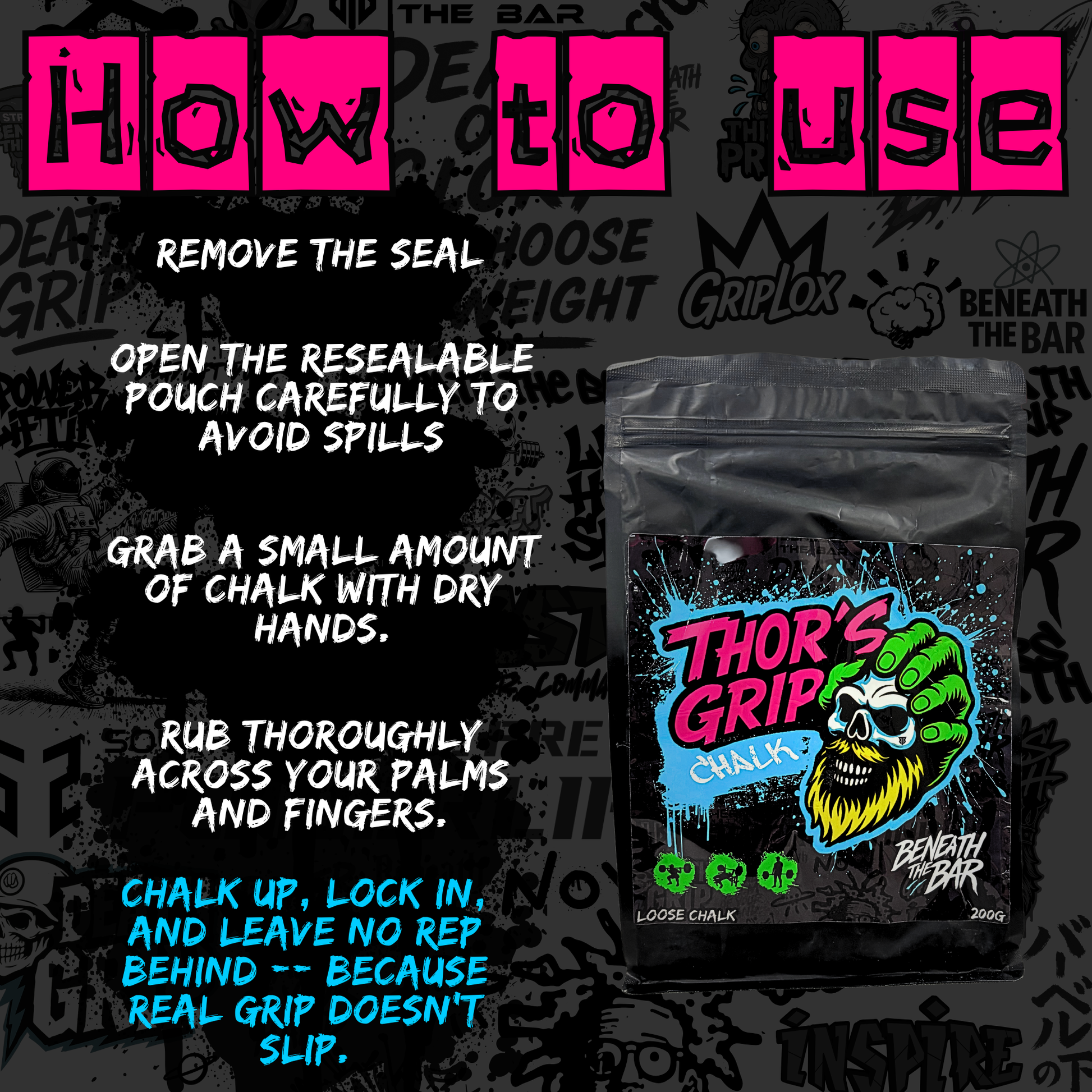 Thor's Grip is pure, high-friction loose chalk crafted for serious lifters. Whether you're deadlifting, pressing, or pulling heavy, this chalk delivers dependable grip and dry hands — no gimmicks, no fillers.